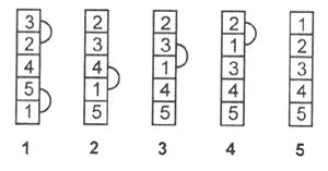 На (рис. 1.2.1) цифрой 1 обозначено исходное состояние массива и перестановки на первом проходе, цифрой 2 — состояние после перестановок на первом проходе и перестановки на втором проходе, и т. д.