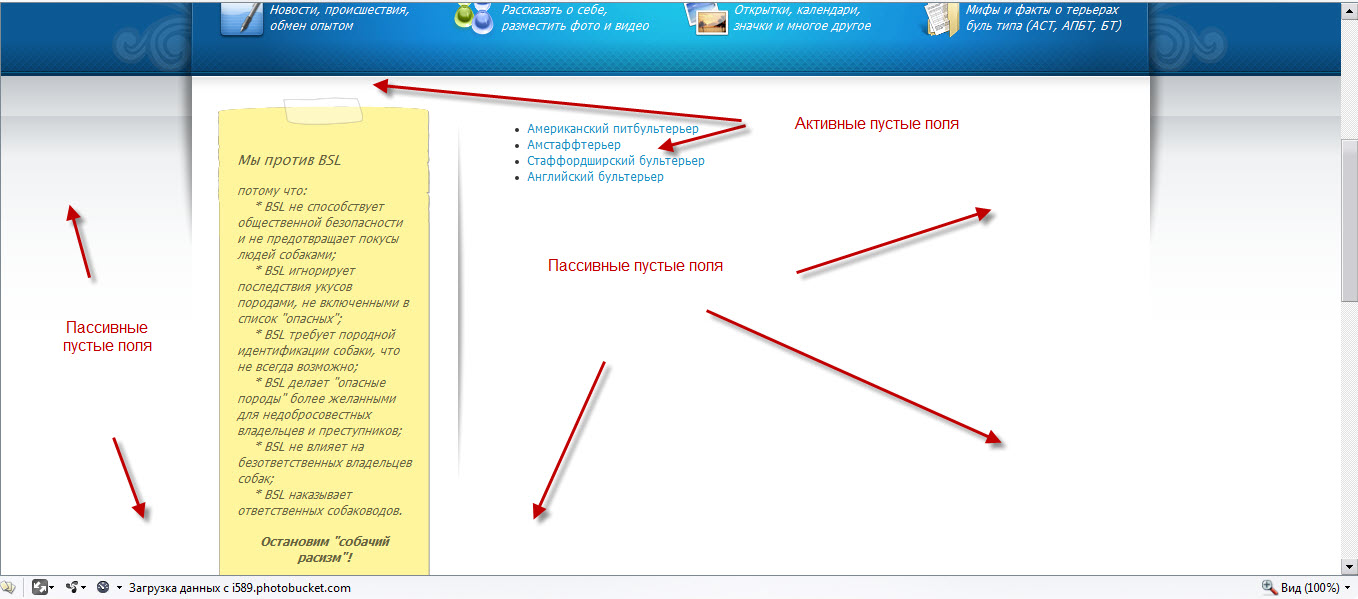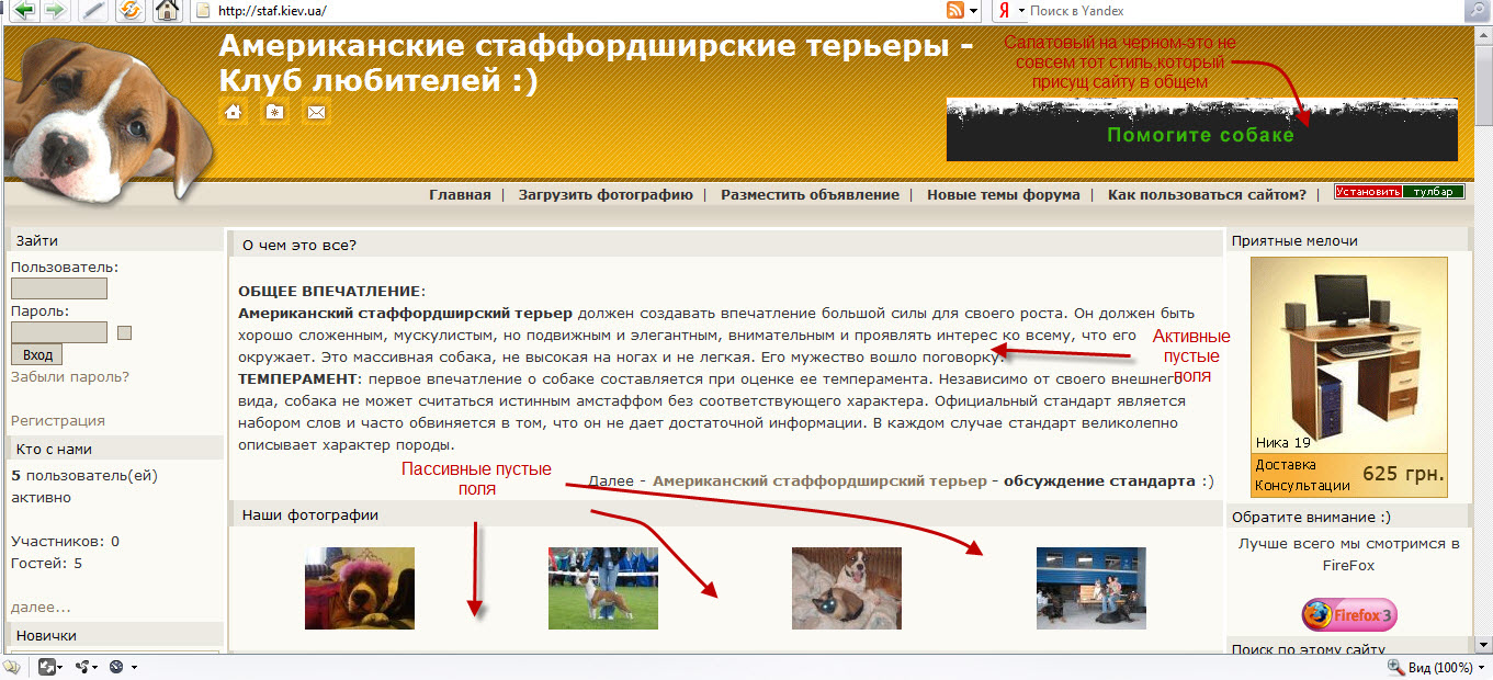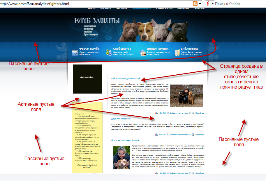 Рисунок 2 - Второстепенная страница сайта "Американские стаффордширские терьеры - клуб любителей"