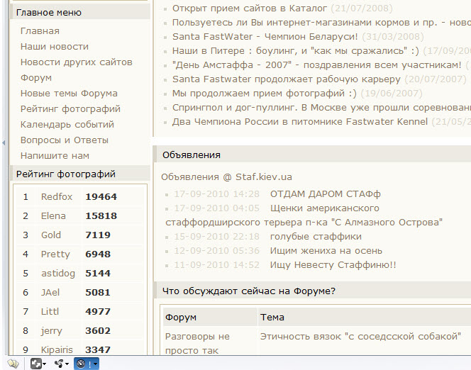 Ключевые слова сайта – стаффордширский терьер. Именно с этим тегом сайт в поисковиках располагается в первых 10-ти сайтах.