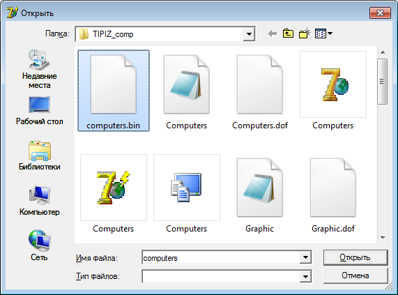- вывод информации об отдельном компьютере из типизированного файла на экранную форму в отдельные поля ввода;