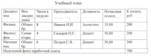 Вид дисциплины зависит от названия дисциплины. Один и тот же преподаватель может вести разные предметы и преподавать на различных специальностях, но его должность при этом не меняется, то есть является его coбственым атрибутом. Почасовая оплата определяется только должностью.