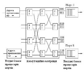 Реалізація комутаційної матриці 8x8 за допомогою двійкових перемикачів