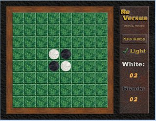 Затем нажимая левой клавишей мыши на игровом поле делаем ходы, ставя свои фишки, руководствуясь стандартными правилами игры. Игра продолжается до тех пор, пока всё поле не будет заставлено фишками игрока и противника. Затем программа предлагает начать новую игру.