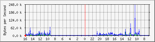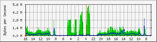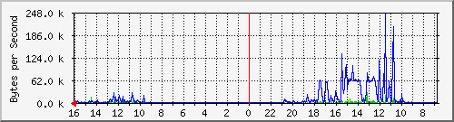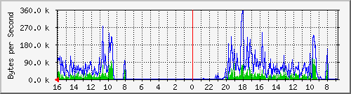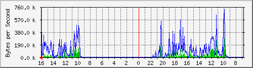 С помощью программы MRTG [ http://people.ee.ethz.ch/~oetiker/webtools/mrtg/ ]была снята статистика загруженности портов с корневого коммутатора сети.