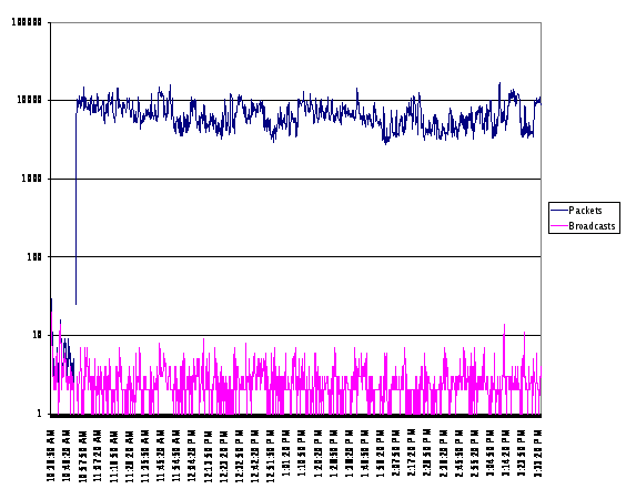 Анализ трафика производился с помощью программы Sniffer Pro [ http://www.mcafee.ru/products/sniffer/ ] установленной на компьютере подключенном к порту коммутатора Cisco 3750 настроенного в качестве порта SPAN.