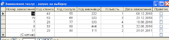 1. З таблиці “Замовлення послуг” видалимо записи, в яких замовлення виконано. Дані, що підлягають видаленню, збережемо в окремій таблиці.