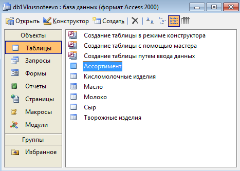 Конструктор - открытие выделенного объекта в режиме конструктора;