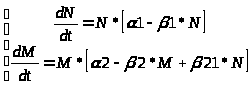 Дифференциальные уравнения изменения численностей популяций имеют следующий вид: