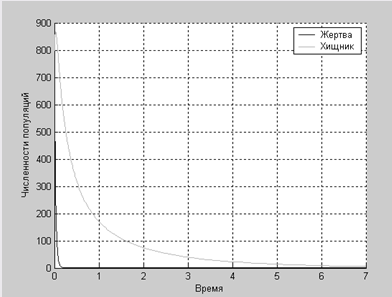 А при таких коэффициентах, как популяция жертвы, так и популяция хищника, прекратят свое существование.