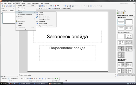 «Разметка слайда» и выбрать макет содержимого.