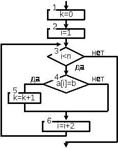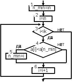 блоки 3 – 5 поиск первого нулевого элемента в массиве;