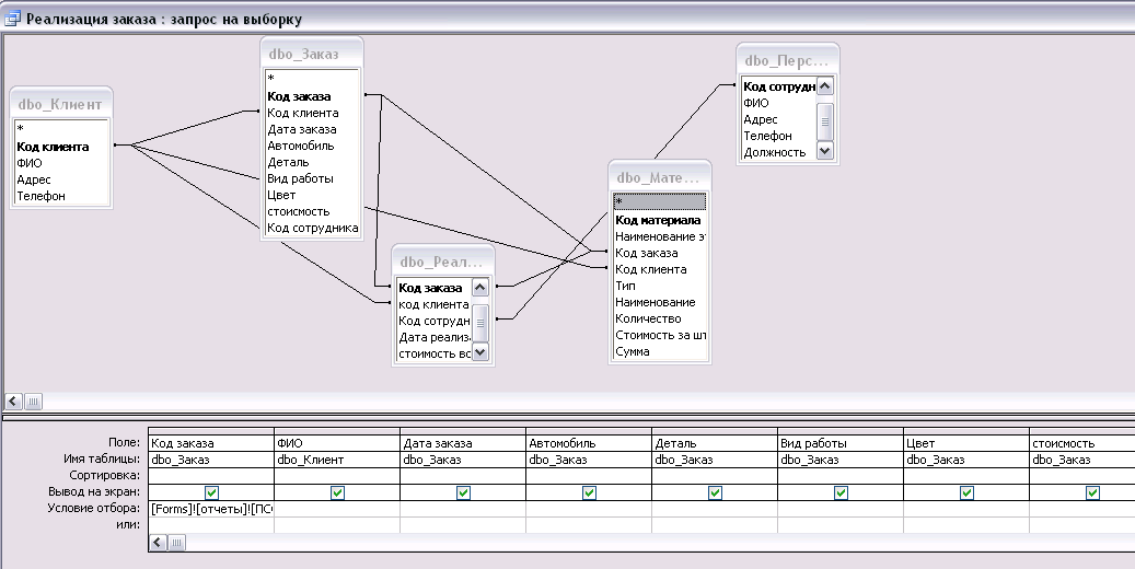 Эти отчеты основаны на запросах материалы для заказа (рис.3.16.) и материалы для этапа заказа (рис.3.17).