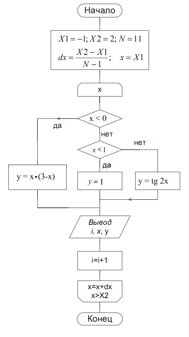 Написать алгоритм и программу для вычисления значения у из таблицы 4 для х, введенного с клавиатуры. Произвести тестирование программы.