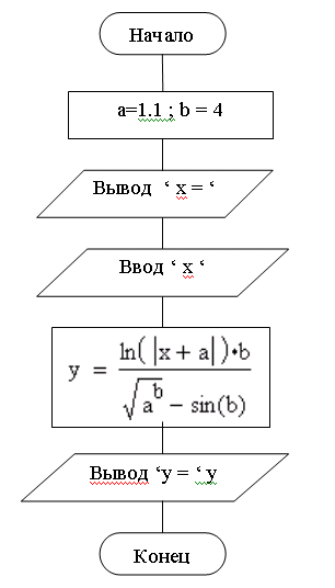 y:= ln(abs(x+a))*b/(sqrt(exp(b*ln(a)))-sin(b));