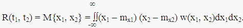 Спектрально-корреляционная модель оперирует с двумерной плотностью распределения вероятности w(x>1>, x>2>), связывающей отсчеты случайного процесса, взятые в разные моменты времени x>1> = x(t>1>) и x>2> = x(t>2>). Если изменять t>1> и t>2>, то можно исследовать попарную связь всех отсчетов между собой и, в принципе, последовательно определить все связи, описываемые N-мерным законом распределения. В спектрально-корреляционной модели для описания этой связи используется корреляционный (второй смешанный центральный) момент: