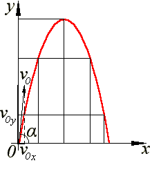 Так как на тело действует только сила тяжести, то при движении тела будет изменяться только проекция скорости v0y. Проекция же v0x изменяться не будет так же, как при прямолинейном равномерном движении: