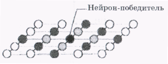 Положение нейронов и их нумерация определяются массивом весовых векторов, который для данного примера имеет вид:
