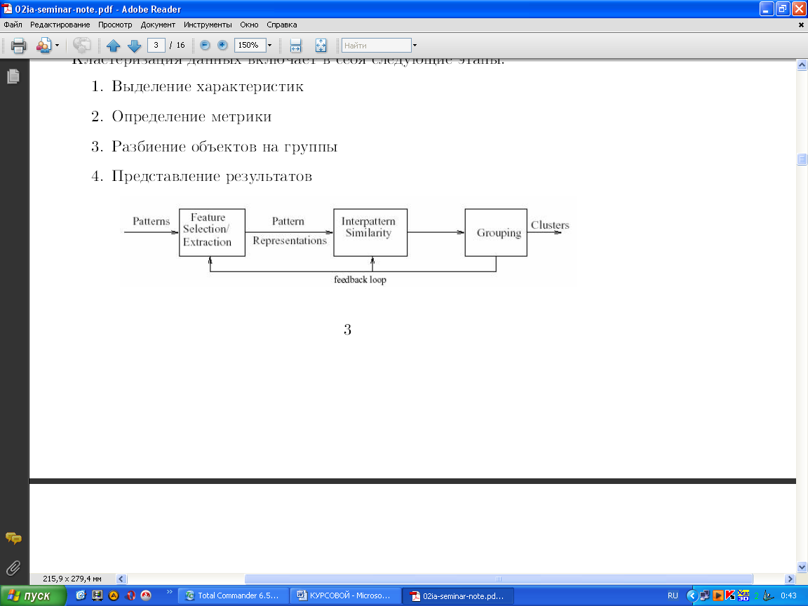 Дано множество данных с целью установления существования классов или кластеров данных |
