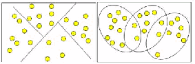 Кластеры могут быть непересекающимися, или эксклюзивными, и пересекающимися. Схематическое изображение непересекающихся и пересекающихся кластеров дано на рисунке 1.2