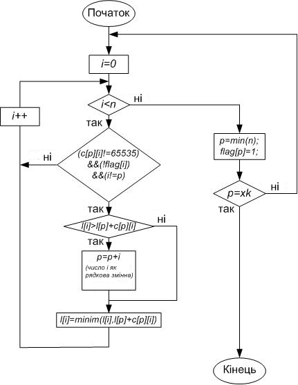 Схема програмної реалізації алгоритму Дейкстри