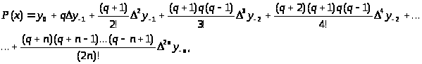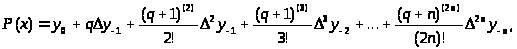 Блок-схеми описаних вище алгоритмів відповідно на рис 2.1 та рис 2.2. В даних алгоритмах вважається, що матриця A використовуються для збереження таблиці різниць, значення x, x0, n, q – однойменні змінні [6].
