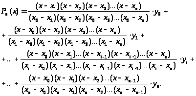 тобто інтерполююча функція Рn(х) повинна приймати ті ж значення, що і функція f(х), яку ми визначаємо (що інтерполюється), для вузлових значень аргументу х0, х1, ... , хn.