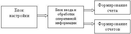 Основными задачами подсистемы являются формирование счета за предоставленные услуги на основании введенной справочной информации и текущих оперативных данных по состоянию гостиничных номеров; контроль использования услуг гостями, а также получение необходимой внешней и внутренней отчетности. В связи с этим систему можно логически разбить на несколько основных структурных блоков представленных на схеме.