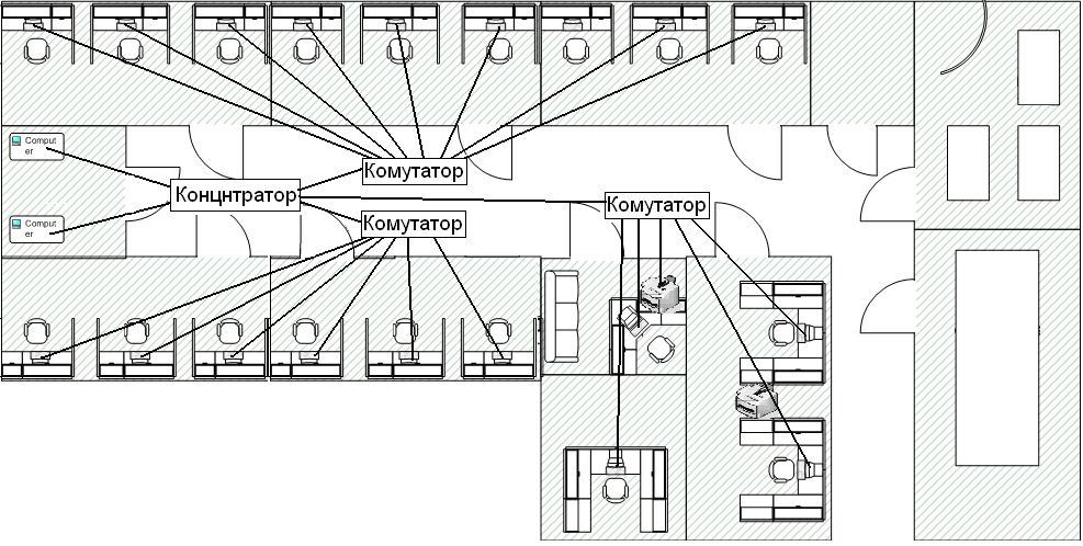 На рис. 1. подано план будівлі для якої буде розроблятися мережа.