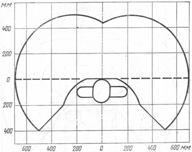 Рисунок 2 – Зона досягаемости моторного поля в горизонтальной плоскости при высоте рабочей поверхности над полом 725 мм.[4]