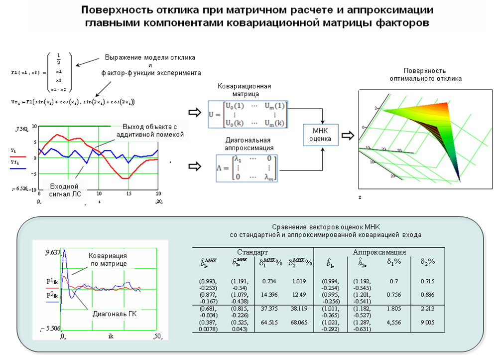 Еще раз уточним различие принципов АГК и оценивания параметров статистических регрессионных моделей в достижении одной цели – получения характеристик стохастических сред, в особенности наиважнейшей из них – корреляционной функции входного пространства данных. Именно разница принципов позволяет достигать результата при нехватке априорной информации – если мала априорная информация о помехах, то решение обращается к дисперсионным моделям случайных реализаций с их собственным ортонормированным пространством.