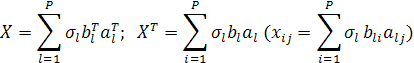 • Формула ортогонального преобразования получения подобия корреляционной матрицы данных – диагонального оператора из дисперсий пространства данных.