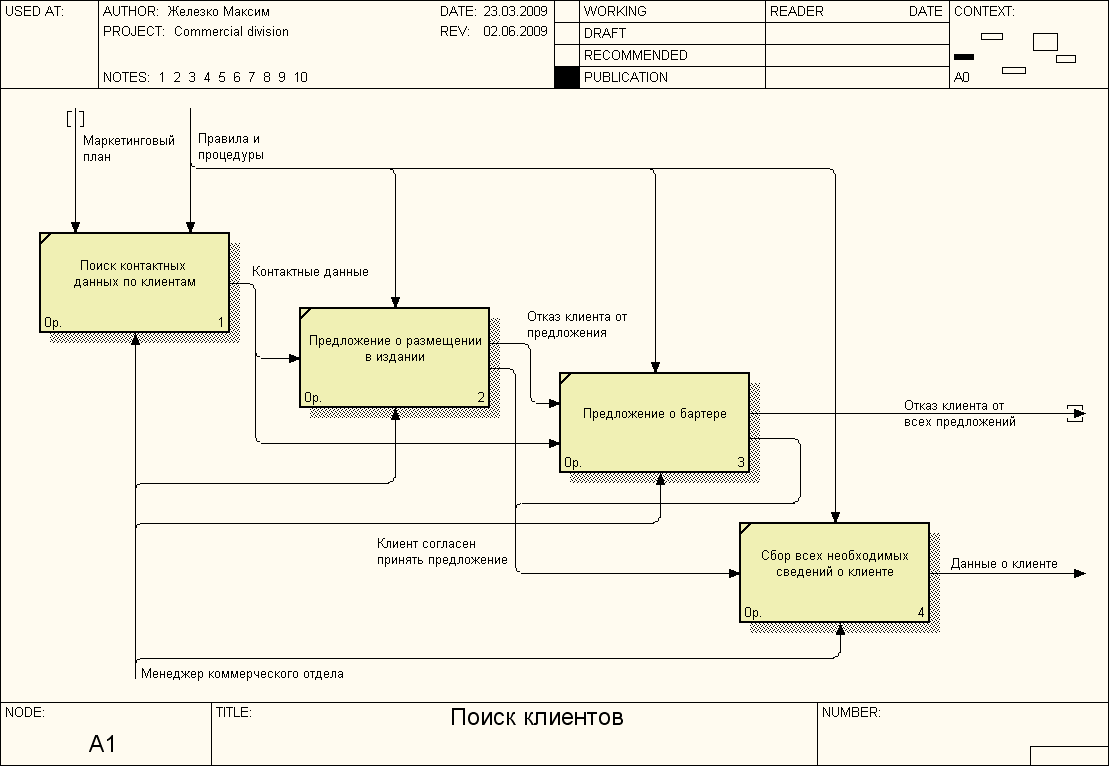 Рисунок 3 – Диаграмма с декомпозицией бизнес-функции “Поиск клиентов” на основе методологии IDEF0