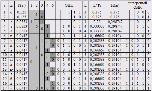6.3 Оптимальный неравномерный ОНК Хаффмана, алгоритм расчета ОНК, средняя длина, энтропия, коэффициент сжатия, коэффициент эффективности, сообщение в ОНК, КБД