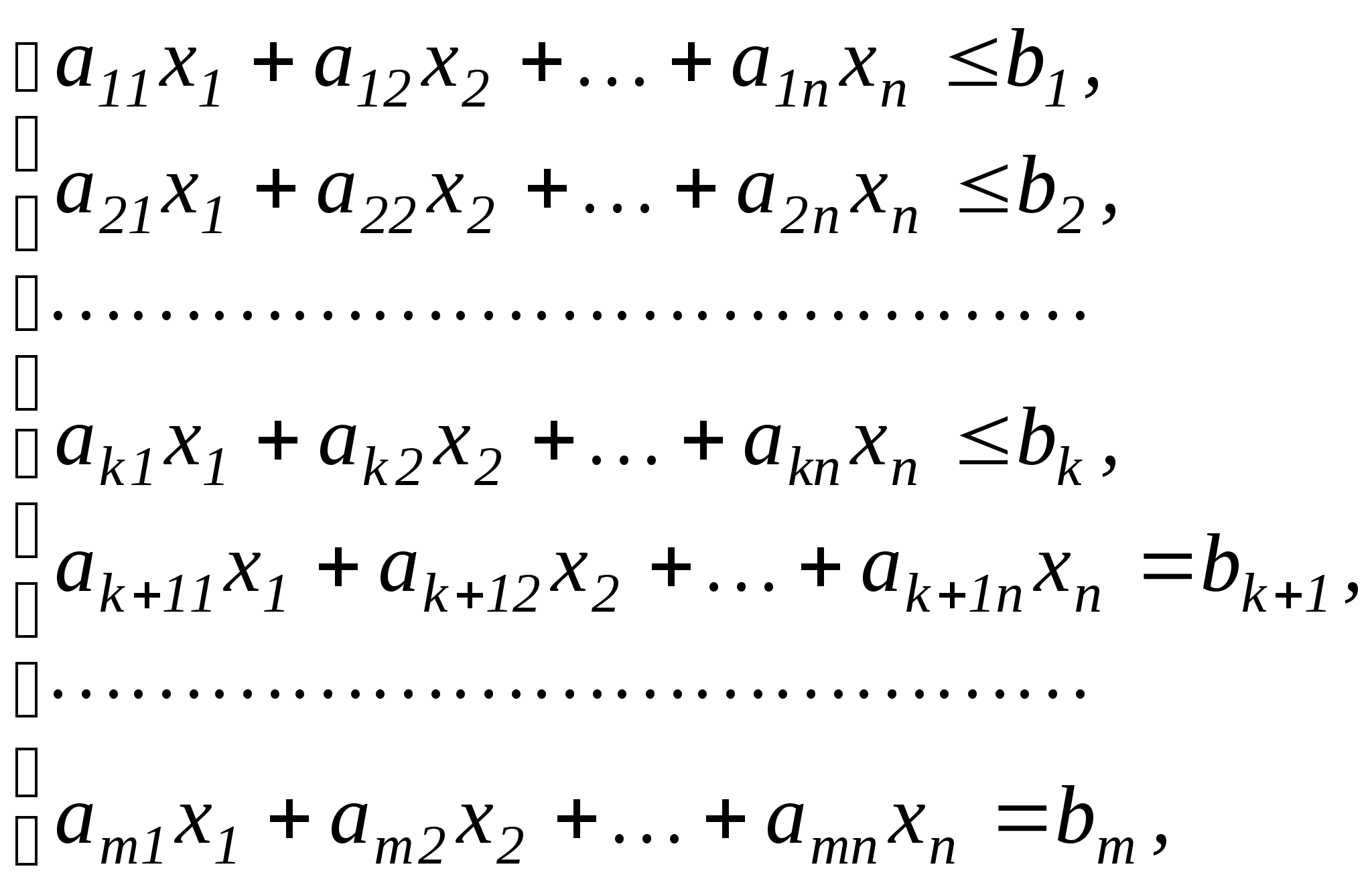 ∑ a>ij>x>j> ≤ b>i> (i=1,k) (1.2)