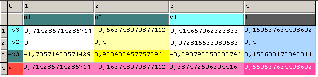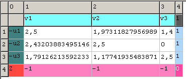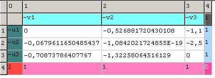 1) Розв’язується k однокритеріальних задач ЛП за допомогою симплекс-методу (для кожної з функцій мети окремо, з тією самою системою обмежень, що задана для багатокритеріальної задачі). Так отримуємо k оптимальних векторів значень змінних (для кожної з цільових функцій – свій).