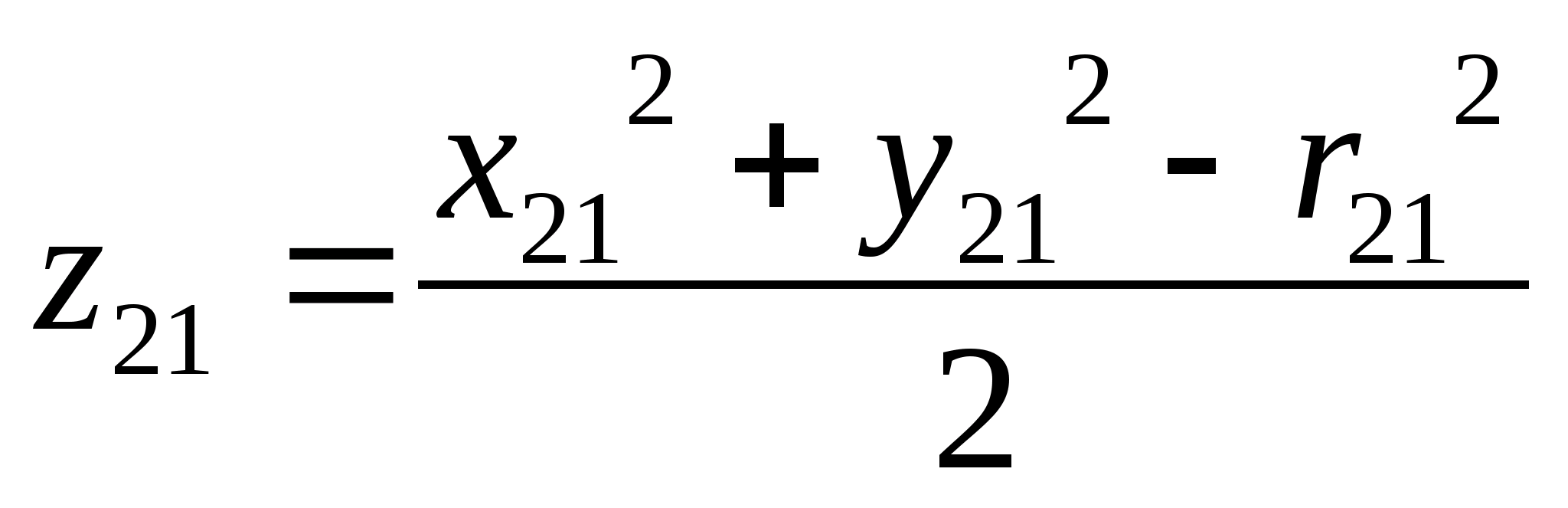 double z21 = (x21 * x21 + y21 * y21 - r21 * r21) / 2;