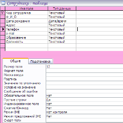 Реализация таблицы товары Реализация таблицы сотрудники показана на рисунке представлена на рисунке: