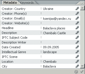 Щоб до кінця проникнутися всіма можливостями даних, що впроваджуються у фотографію, перейдіть на наступну вкладку - Keywords (Ключові слова). Завдяки заповненню ключових слів ви дістаєте можливість розрізняти файли по їх змісту.