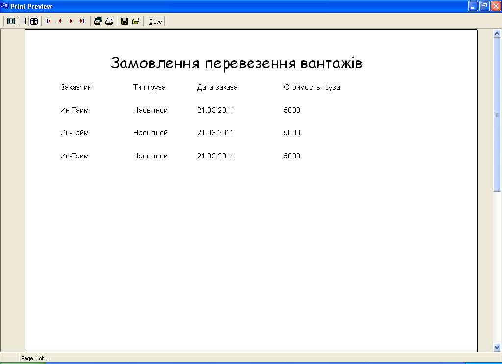 Програма, яке розробляється у курсовому проекті, має назву «Вантажоперевезення». Вона призначена для автоматизованої роботи з даними по перевезенні вантажів – введення, редагування, видалення довідкових даних, даних про вантаж, його типи, кількість вантажу, вартість за перевезення. Програма дозволяє у зручному вигляді переглядати та обробляти інформацію, а також забезпечує швидкий пошук, введених раніше даних, та, крім того, формування звітної інформації у вигляді звіту за замовленням перевезення вантажів.