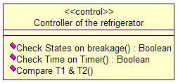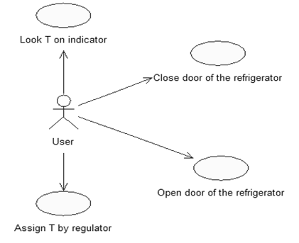 Требуется разработать средствами Rational Rose модель программного обеспечения встроенного процессора холодильника. В холодильной камере имеется регулятор температуры, мотор, термометр, индикатор, таймер, датчик открытия двери камеры и устройство для подачи звуковых сигналов.