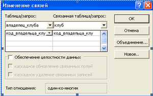 Чтобы установить обеспечение целостности данных, щелкают правой кнопкой на появившуюся связь, выбирают команду «Изменить связь, после чего открывается диалоговое окно связи (рис.11):