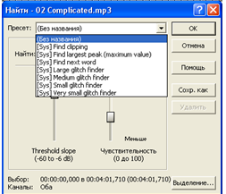 Для того чтобы применить эффект необходимо сначала выделить область аудиофайла (Приложение 1)