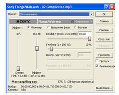 Хорус - не единственный эффект, который достигается сочетанием задержки с модуляцией. Еще три родственных эффекта находится в диалоговом окне Флэнджер/Вау Вау (рис. 2.5.9) (меню Эффекты).