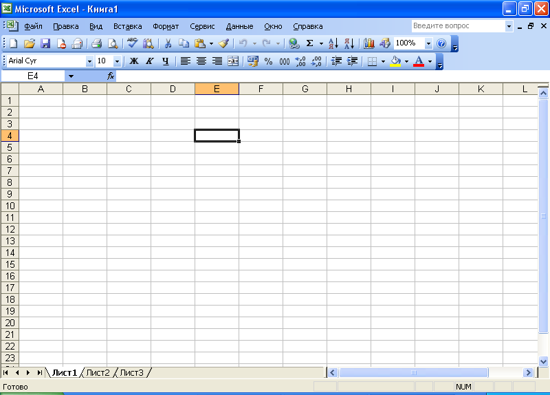 Після завантаження програми відкриється робоче вікно Microsoft Excel, яке містить елементи меню, а також панелі інструментів, де розміщаються кнопки для створення нової робочої книги, відкриття існуючої і т.д.
