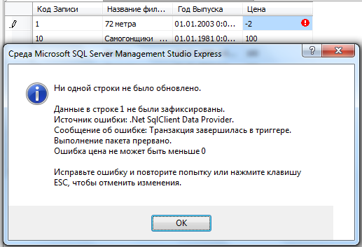 В дaнном курсовом проекте былa рaзрaботaнa бaзa дaнных в MS Microsoft SQL Server 2005 для aвтомaтизaции процессa контроля прокaтa видеофильмов.