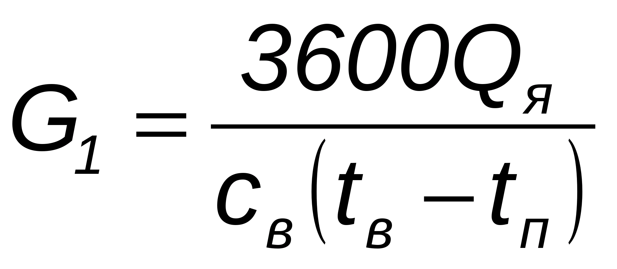 G>1>Х = 3600 • Q>я> / с>в> (t>в> – t>п>) = 3600 • 52,6 / 1 • (20-14) = 31 560 кг/ч