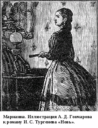 Тургенев не примкнул к революционерам-разночинцам; он даже ушел из журнала «Современник» (в 1860 г.), ставшего их органом, хотя с этим журналом он был связан еще с 1847 г. Однако он по-прежнему остро ощущал «давление времени» и первый убедительно и правдиво отразил в литературе перемены, происходящие в русском обществе. В романе «Накануне» (1859) неудачникам-дворянам Берсеневу и Шубину противопоставлен новый герой — разночинец Инсаров, болгарин, борющийся за освобождение родины от турецкого ига. Противопоставление подчеркивается тем, что героиня романа — Елена Стахова, которую любят и Шубин, и Берсенев, и Инсаров, выбирает Инсарова и уезжает с ним, чтобы участвовать в освобождении Болгарии. Елена — натура цельная, решительная и самоотверженная. Пустота обеспеченной и праздной жизни отталкивает ее. «Кабы были между нами путные люди, не ушла бы от нас эта девушка, эта чуткая душа»,— говорит Шубин. Но «путных людей» вокруг не было, а Инсаров указал ей цель жизни. После смерти его Елена не вернулась в Россию, а осталась в Болгарии продолжать его дело.