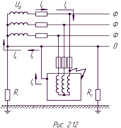 Рис.14. Схема захисту під час переходу високої напруги в мережі низької в нейтраль |