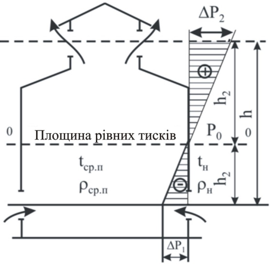 Таким чином, під впливом різниці тисків в приміщенні виникає повітрообмін з надходженням повітря через нижні отвори і видаленням через ліхтарі.