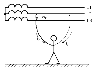 Однофазное прикосновение к токоведущим частям трансформатора в нормальном режиме работы сети напряжением 10 кВ |